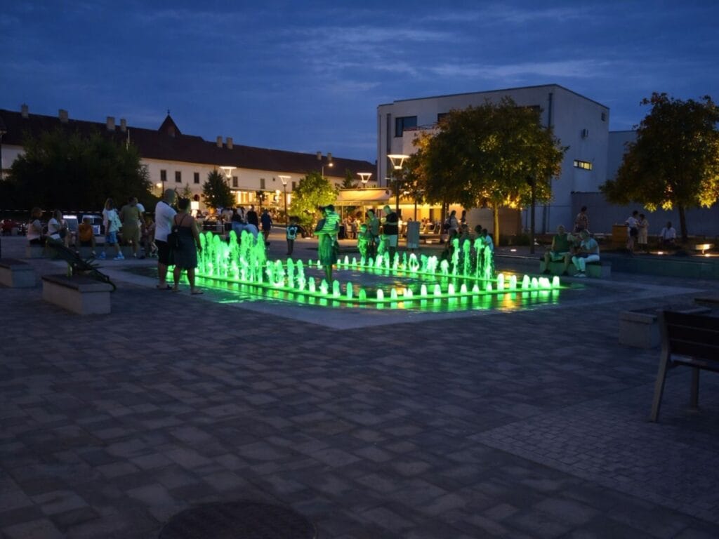 PLC alapú egyedi vezérlési rendszert alakítottunk ki, amely a szökőkút hullámainak vezérléséhez 18 db frekvenciaváltó működését hangolja össze. Az esti látványhoz RGBW LED megvilágítást integráltunk a vezérlésbe, így a vízkép és a fények összehangoltan működnek.A korábbi konstrukciós hiba miatti beázási kockázat kezelésére védelmi funkciót építettünk be: a rendszer figyeli, ha víz gyűlik az aknában, és azonnali push üzenetes értesítést küld. Ez lehetővé teszi a gyors beavatkozást, még a komolyabb meghibásodás előtt.