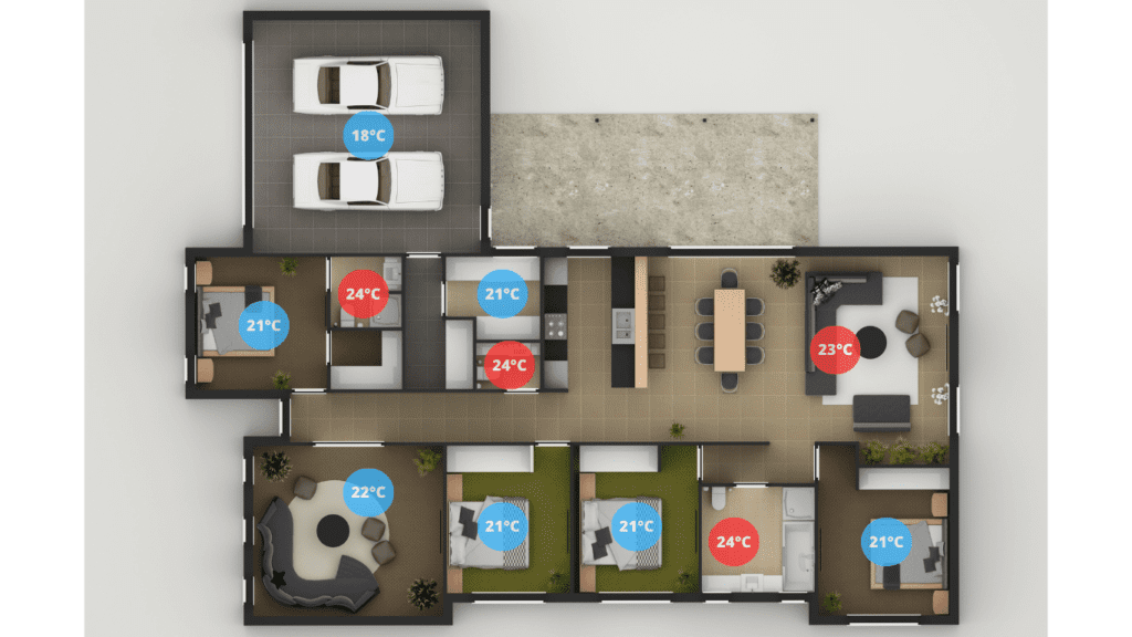 Akár 40%-ot is megtakaríthat éves energiaszámláján. A rendszer csak azokat a helyiségeket fűti vagy hűti, amelyekre szükség van a helyiséghasználat, a méret és a komforthőmérséklet alapján.